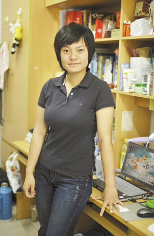 寿欣是宿舍里年龄最小的,22岁,也是唯一一个杭州人。她喜欢运动,打篮球,玩滑板,骑自行车。她曾经从市区家中骑车回下沙,33公里,她骑了1小时10分钟。