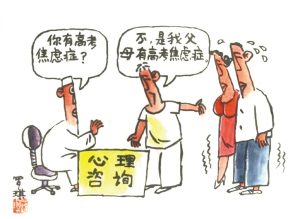 这样的相处很别扭,对于女儿的任何想法,他们无从了解,也不敢去了解,怕一不小心就触怒了她。为此,她和先生在家里的一举一动都是小心翼翼,不敢开电视机,不敢高声讲话,更不用说互相开玩笑了。“现在正处于高考前的关键时期,我们尽量顺着她,不让她情绪有波动。”