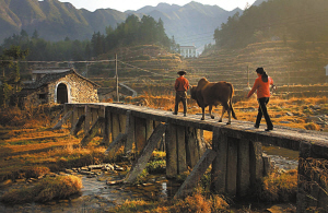 感动于乡野里那对荷锄的夫妻。他们或许一辈子都不曾将“我爱你”说出口,也不曾在月下卿卿我我。他们日出而作,日落而息,总是在默默地劳作中体味着收获着爱的真谛。爱在他们日日操劳中变得平淡,他们想的或许只是稻田的水放了没有,猪圈里的猪喂了没有。但我分明感觉到了,只要山村的那一缕炊烟准时升起,山村的稻香准时飘来,爱就在他们心中永存。他们的爱已经融入了山村浓浓的晨雾,在晨雾中升华;他们的爱也在默默地跟随中丈量,用无声的脚步诠释心灵的默契,休戚与共,贫贱不离。爱许多时候不需要语言。